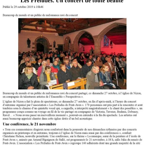 revue de presse du concert du 27 octobre 2019